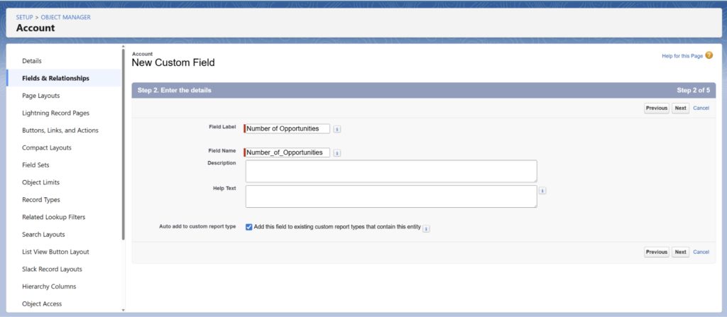 You can also use a roll-up to Sum the amount of all open opportunities related to an account. Applying a filter to only include opportunities where the Stage is not Closed Won or Closed Lost lets you see that account’s total pipeline value at a glance. - Click “Next” when finished and save your changes.
